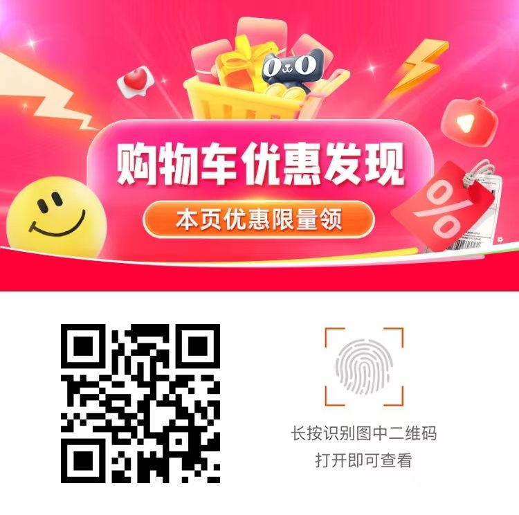 2、购物车优惠券:这个活动很简单,将要买的商品加入购物车,然后手机淘宝扫以下二维码进入超红会场,或者复制口令【27¥ CZ193 sX89f13HpQM¥ https://m.tb.cn/h.SRjDQdj 双11购物车优惠发现】。