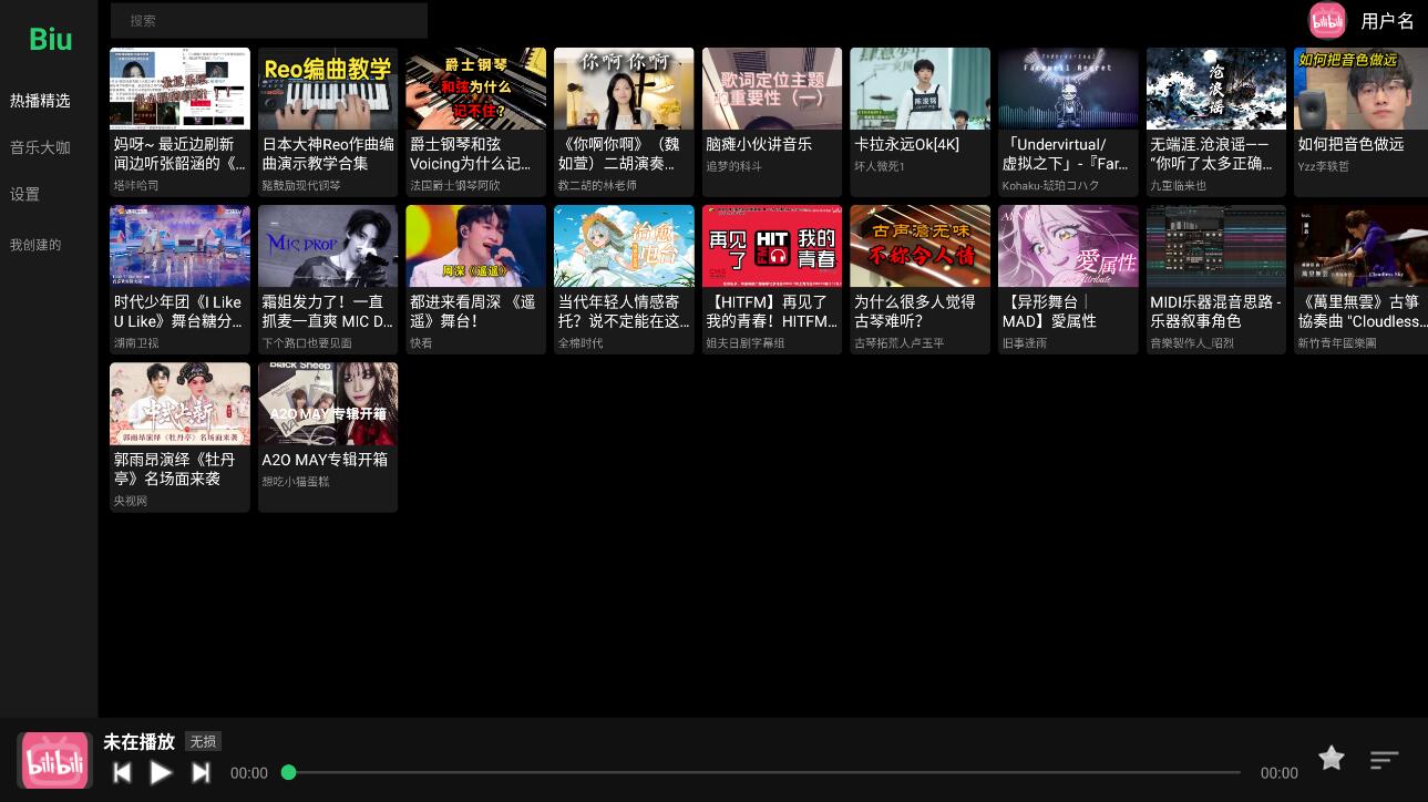 Biu音乐播放器 安卓版是一款 B站源免费音乐播放软件,它有着大量 MV、演唱会、翻唱、原创音乐等优质音频资源。如果你想在开车、通勤、工作时,把B 站当成“音乐源”来用,但又不想要视频界面里一堆干扰元素,更不想为了听首歌浪费流量、占用设备内存,那这款音乐软件就是为你而设计。它是基于批哩批哩公开接口开发的跨平台音乐播放器,最早是桌面端应用,支持Windows、macOS和Linux(项目地址:https://github.com/wood3n/biu)。一位开发者看到桌面版Biu后觉得非常实用,于是把它移植到了安卓平台上,这才有了今天的这个最低支持安卓4.2,适配手机、平板、汽车的安卓版本。